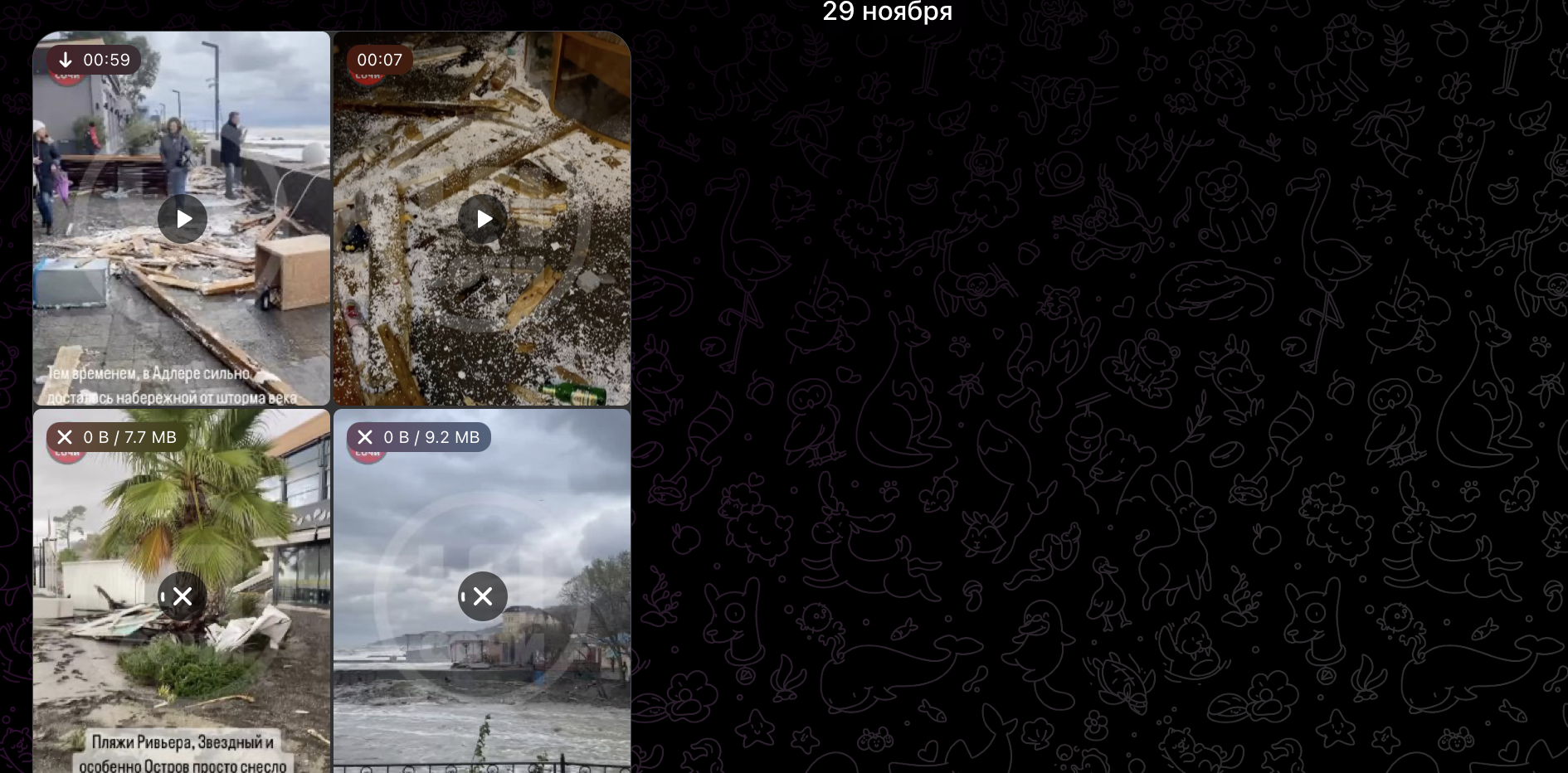 Последствия шторма в ноябре. Скриншот ТГ-канала "ЧП Сочи"
