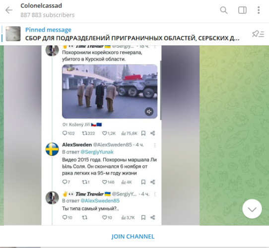 Недавно со стороны противника была ещё одна провокация. Так, по данным украинской стороны, "корейский генерал, участвовавший в боях и убитый в Курской области, был похоронен на родине со всеми почестями". Враг не поленился представить "доказательства". Конечно, фейковые. Речь про скриншот видеокадров 2015 года. На нём действительно похороны корейского генерала, который скончался 6 ноября от онкологии на 95-м году жизни.