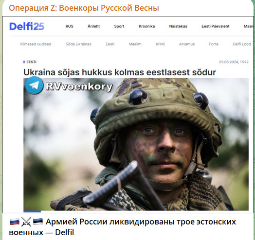 В зоне специальной военной операции убиты трое граждан Эстонии, воевавших на стороне киевского режима. Об этом пишет ТГ-канал "Военкоры Русской весны" со ссылкой на портал Delfi.