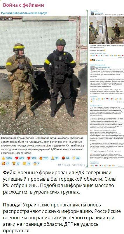 В-третьих, в сюжете заявляется, будто диверсионные вылазки на территорию России осуществляют этнические русские, не связанные с ВСУ. На деле так называемый РДК* приписан к воинской части ВСУ №A3449. Это случайно раскрыла украинская блогерша, занимающаяся сбором средств для украинской армии.