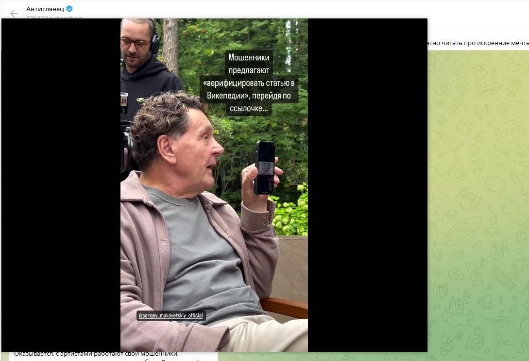 Маковецкому позвонил молодой человек с интересным предложением - привести в "надлежащий вид" посвящённую артисту страницу в "Википедии". Якобы по чьему-то злому умыслу там изменили текст и теперь указано, что Маковецкий то ли работал трактористом, то ли по сей день трудится за рулём трактора. Чтобы "смыть позор" с имени знаменитости, артисту предложили перевести на указанный счёт определённую сумму. И тут "операция" пошла не по плану…