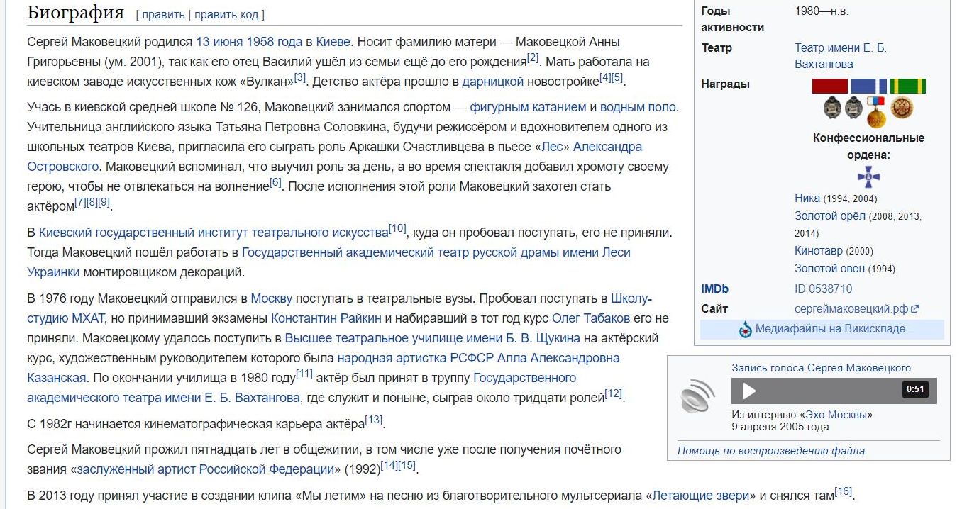 На этом общение злоумышленника с народным артистом России завершилось. Мошенник остался ни с чем, Сергей Маковецкий остался при своих деньгах и в хорошем настроении, страница в "Википедии" была и осталась в нормальном виде.