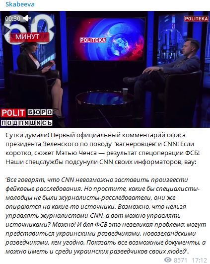 Арестович объяснил ситуацию традиционным аргументом украинской пропаганды: во всём виновата ФСБ. Якобы агенты русской разведки позвонили в CNN и под видом источников "слили" компромат на Украину.