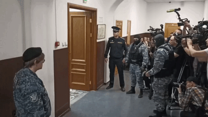 В Басманный суд привезли ещё одного террориста по делу о теракте в "Крокусе" - Шамсидина Фаридуни *. Провели его жёстко - сразу в зал заседания.