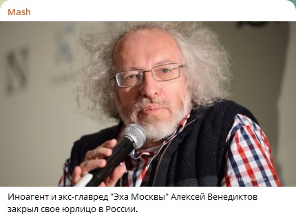 * Алексей Венедиктов - признан Минюстом Российской Федерации иностранным агентом.