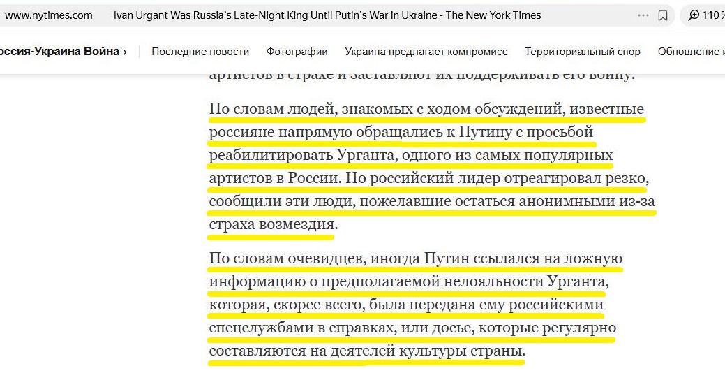 Но потом The New York Times начинает вещать, будто это чуть ли не лично Путин решил Урганта отменить.