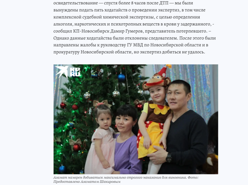 Потерявший всю свою семью в страшном ДТП сибиряк Азамат Шакиров рассказал о странностях в деле, которое было возбуждено по факту произошедшего. Мужчина опасается, что виновника гибели всех его близких банально "отмажут" и он отделается, как говорится, лёгким испугом.