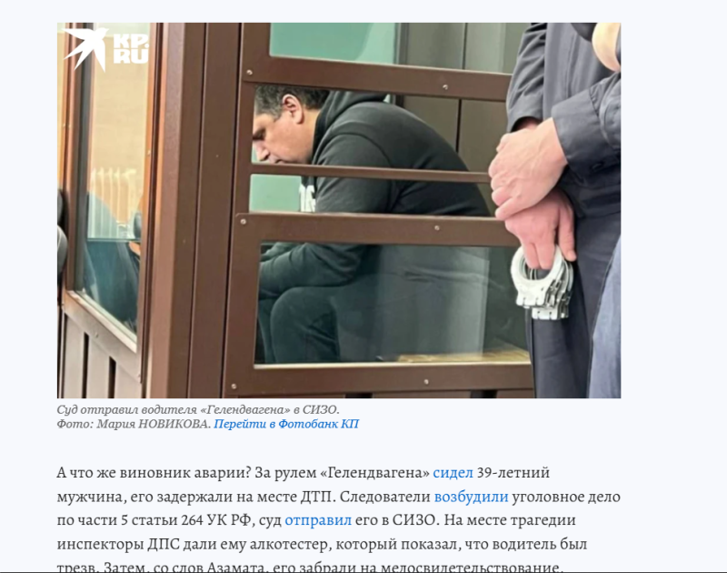 Сейчас водитель "Гелендвагена" в СИЗО, ему предъявлено обвинение по статье 264 УК РФ "Нарушение ПДД, повлекшее смерть двух и более лиц". На медосвидетельствование мужчину почему-то отправили только спустя восемь часов после ДТП, говорит Азамат Шакиров.