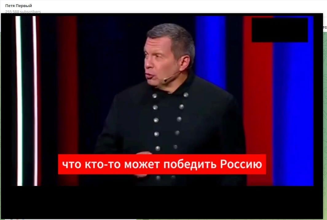 - Соловьёв: – А вы что, считаете, что кто-то может победить Россию? <…> Когда они [украинцы] двинутся от своих баз, они будут уничтожены в процессе движения…