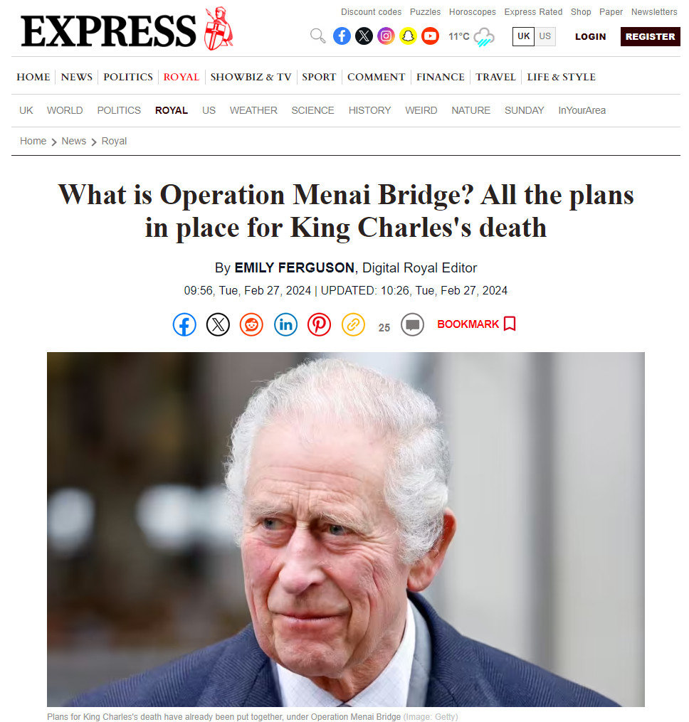 Об этом пишет Express. План действий на это случай называется "Мост Менай". Название плана дано в честь подвесного моста в Уэльсе из-за отношений короля с данным регионом: Чарльз был принцем Уэльским более 64 лет.