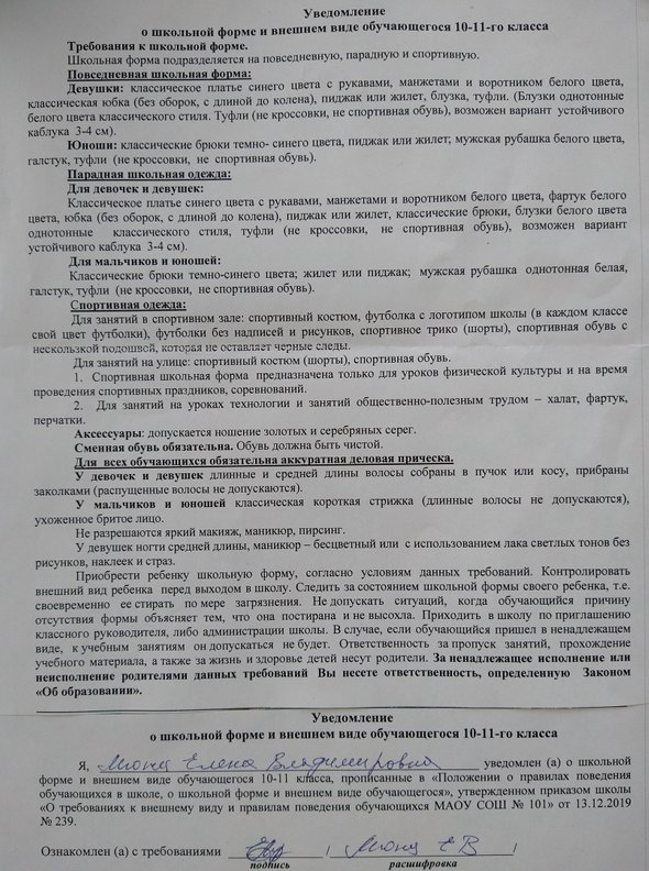 Так же дирекция школы говорит, что не раз делали замечание девочке о цвете волос. В день приёма Елена Мюнц заполнила все документы для зачисления в 10-й класс. После чего директор 101-й школы уточнила, с этим ли цветом волос ученица придёт в школу 1 сентября.