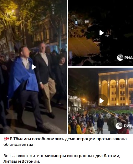 Ранее в Грузии был принят закон об иноагентах, который обязывает некоммерческие организации с иностранным финансированием выше 20% отчитываться об этом. В ответ на это в столице страны начались акции протеста, перетекающие в стычки с полицией и попытки штурма правительственных зданий.