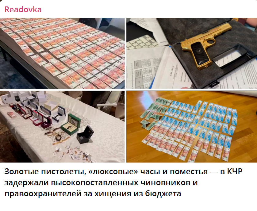 ФСБ показала золотой пистолет, часы и недвижимость задержанных в КЧР чиновников. Как оказалось, местные чиновники в связке с силовиками расхищали госсубсидии, выделенные на развитие сельского хозяйства региона.