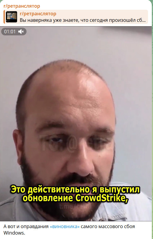 Он добавил, что проблема до сих пор полностью не решена. Но Россию это не затронуло, потому что клиентов CrowdStrike у нас в России нет, так же как клиентов Microsoft. И Китай тоже это не затронуло - по тем же причинам.