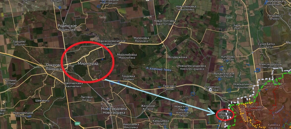 В углу карты вы видите выделенный красным кружком посёлок - настоящее кладбище "Абрамсов". Небратья сейчас туда активно перебрасывают силы, чтобы остановить продвижение русских. Надо сказать, что наши вперёд-то особо и не прут, предпочитая небратьев "обнулять" издали. А ещё ведь можно и калибровать. Выделенный в центре карты городок и стал их объектом.