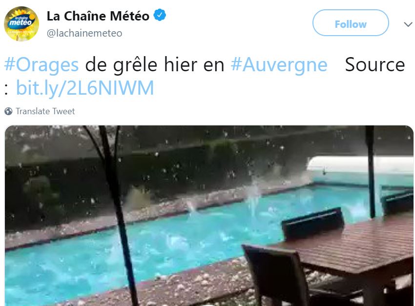 Непогода обрушилась на французский регион Овернь-Рона-Альпы в минувшую субботу. Местные жители, пережившие бомбардировку градом размером с куриное яйцо, выкладывают в соцсетях впечатляющие фото.
