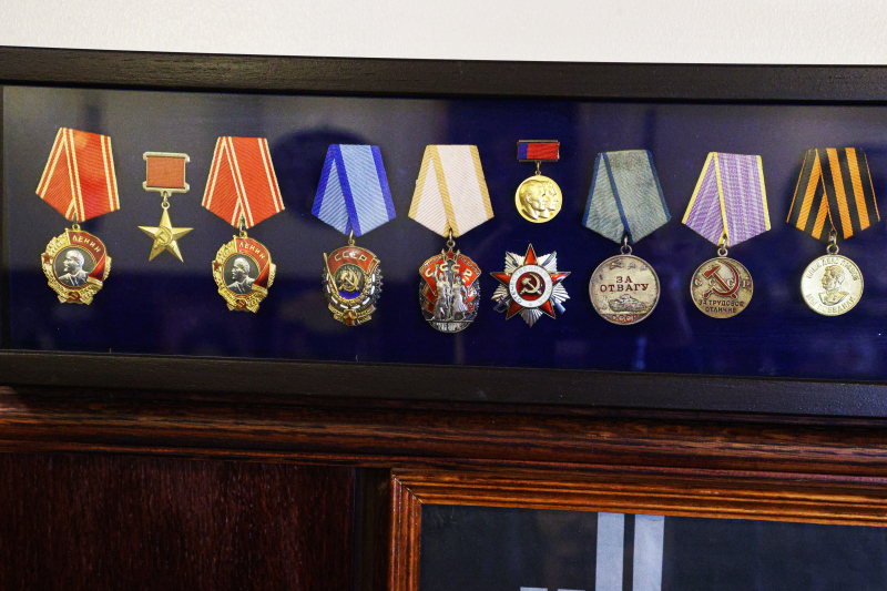 Награды в кабинете Юрия Никулина. В годы войны он получил медали "За отвагу", "За оборону Ленинграда", "За Победу над Германией в Великой Отечественной войне 1941-1945 гг.". Фото: Bulkin Sergey/globallookpress