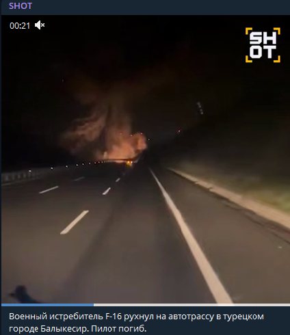 В Турции военный истребитель F-16 рухнул на оживлённую автотрассу Измир-Стамбул. Рассказываем о последствиях, публикуем заявления властей.
