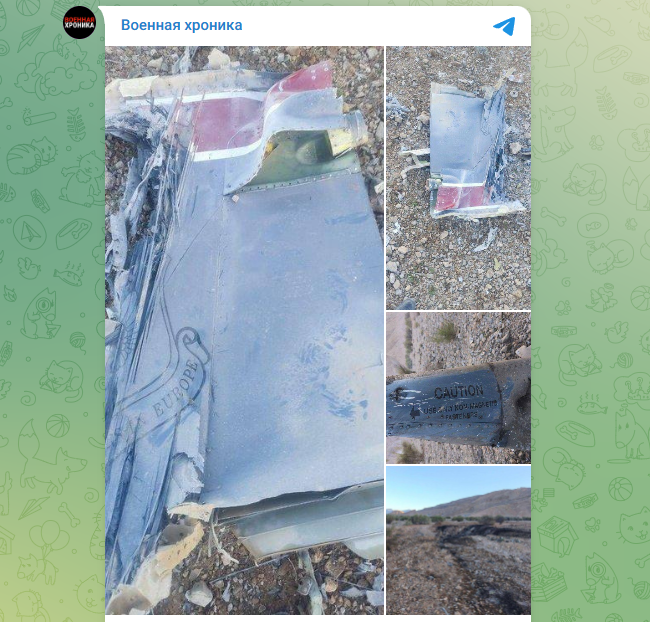 Корпус стражей исламской революции (КСИР) публикует видео сбития американского истребителя F-15E, а также фотографии обломков самолёта, на которых видна часть эмблемы 494-й эскадрильи ВВС США "Пантеры" (базируется на авиабазе Лейкенхит в Великобритании).