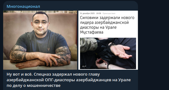 На Урале вновь обострилась скрытая война внутри азербайджанской диаспоры. В Екатеринбурге 1 декабря был задержан новый, недавно избранный глава местной общины Видади Мустафаев. Это произошло всего через три месяца после того, как он сменил на этом посту своего арестованного предшественника и непримиримого оппонента Шахина Шихлинского. Эта цепочка арестов так называемых лидеров диаспоры обнажила системную проблему: криминальные разборки и борьбу за влияние пытаются перенести на русскую землю и сделать её полем боя. Источники и эксперты сходятся во мнении: ну уж нет.
