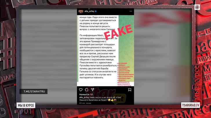[Максим] Галкин* его постоянно оспаривает. Недавно опять подавал какие-то там документы на то, чтобы оспорить статус. Я не понимаю их, то им надо этот статус, то им не надо. Вы, ребята, определитесь, что вы хотите, где вы живёте? В Израиле? На Кипре? В Юрмале? Или вы хотите в Москву? Вы же нам скажите, где вы хотите жить? Вы граждане какой страны? Вам какая публика нужна?