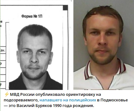 МВД России опубликовало фото подозреваемого в нападении на полицейских в Подмосковье. Злоумышленником является некий Василий Буряков 1990 года рождения. Ведётся его поиск, пишет "Петербургский дневник".