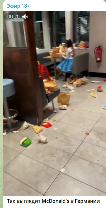 Немецкий McDonals's выглядит не лучше, чем метро в США - грязь, разврат, алкоголь, бездомные. Скриншот//t.me/+nUO1gxI5el9lZTEy