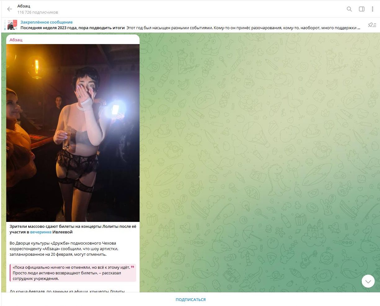 Но проблемы всё-таки начались: как сообщило интернет-издание "Абзац", в подмосковном городе Чехов, где должен был состояться концерт Милявской, зрители уже начали сдавать ранее купленные билеты. О возможных проблемах известили и организаторы выступлений Лолиты в других городах.