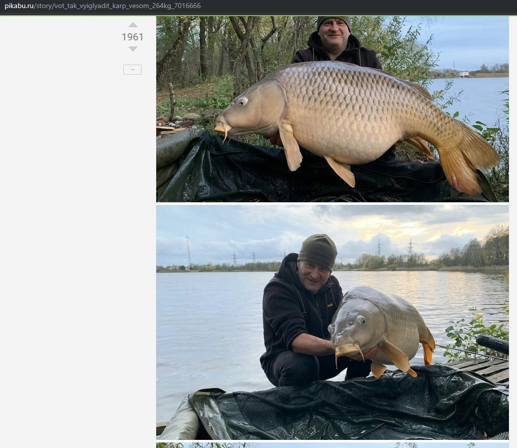 Калининградец Алексей Загородний, пожалуй, стал самым удачливым рыбаком прошлой недели. Он поймал карпа весом 26,4 килограмма - рекорд поставил 27 октября на Карповом озере. Кадрами улова делится pikabu, а деталями рыбалки Загородний поделился с "Новым Калининградом".