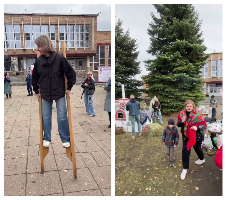 "Русский двор" прошёл в лучших традициях ярмарочных гуляний. Удалые молодцы ловко жонглировали пудовыми гирями, показывая силу. Любой желающий мог попробовать передвигаться на ходулях. И это развлечение имело большой успех.