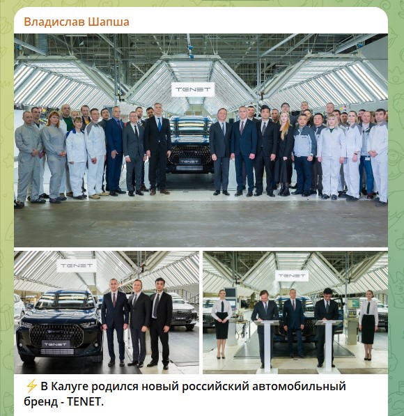 В Сети впервые появились снимки автомобилей нового русского бренда Tenet. Их обнародовал губернатор Калужской области Владислав Шапша.