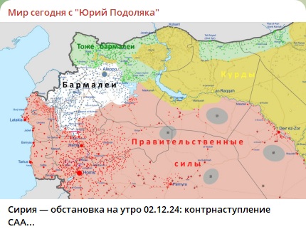Карта боевых действий из Telegram-канала "Мир сегодня с "Юрий Подоляка"