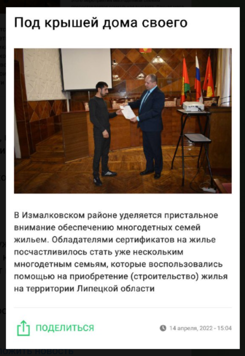 Во-первых, соцвыплату получил гражданин России, уроженец Ставропольского края, а не мигрант. С 2013 года он вместе с семьёй постоянно проживает в Измалковском округе. Мужчина является отцом троих детей, родившихся с 2016 по 2022 год. Один из них имеет инвалидность.