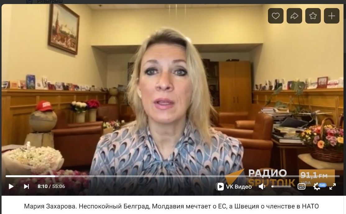 Мария Захарова. Скриншот: группа "Радио Sputnik" в социальной сети "ВКонтакте"