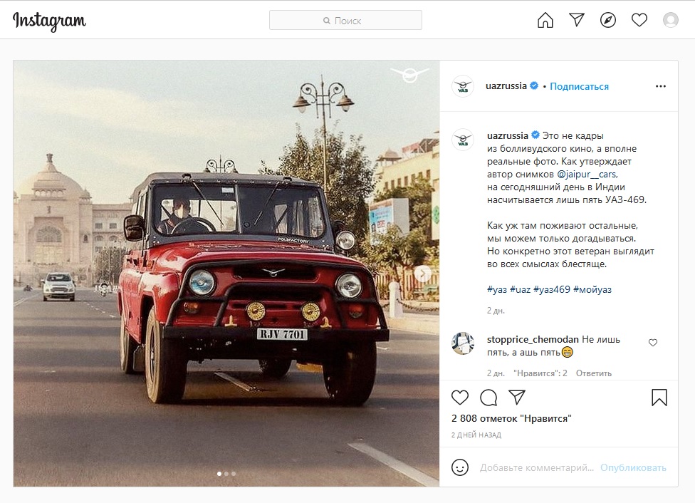 Фото: скриншот Instagram/uazrussia