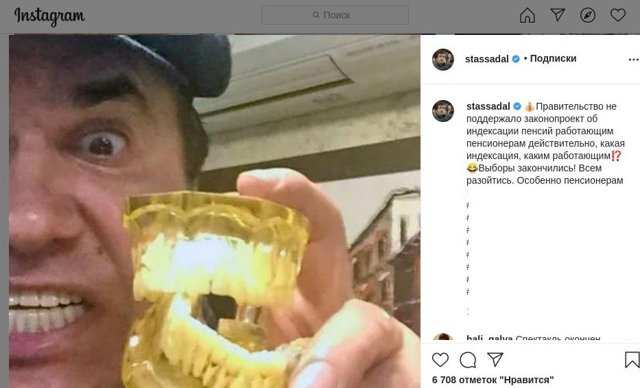 Известный актёр Станислав Садальский отреагировал в своём Instagram на решение властей, опубликовав к посту шутливое "говорящее" фото. В кадре сам актёр держит в руках челюсть. Возможно это можно трактовать как намёк пенсионерам сложить зубы на полку. По крайней мере, именно в таком ключе интернет-пользователи реагировали в соцсетях на отказ чиновников в индексации.