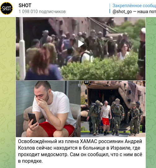 Из плена ХАМАС спустя 8 месяцев был освобождён русский парень - Андрей Козлов. Он работал охранником на злополучной вечеринке, участников которой атаковали 7 октября прошлого года, а теперь его вернула армия Израиля. Последнее, что услышали перед похищением от Андрея по телефону: "Всё очень плохо".