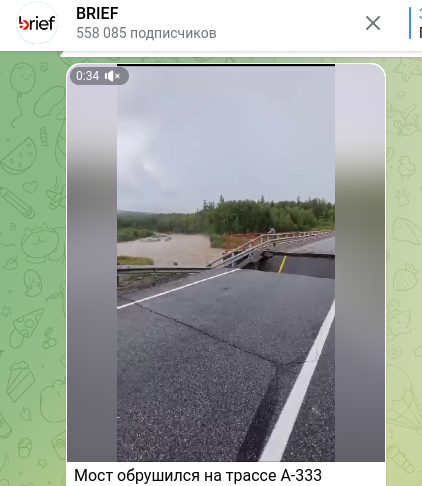 В Бурятии обрушился мост на федеральной трассе А-333, ведущей в Монголию. В региональном МЧС подтвердили: "Проезд отсутствует, объезда нет".