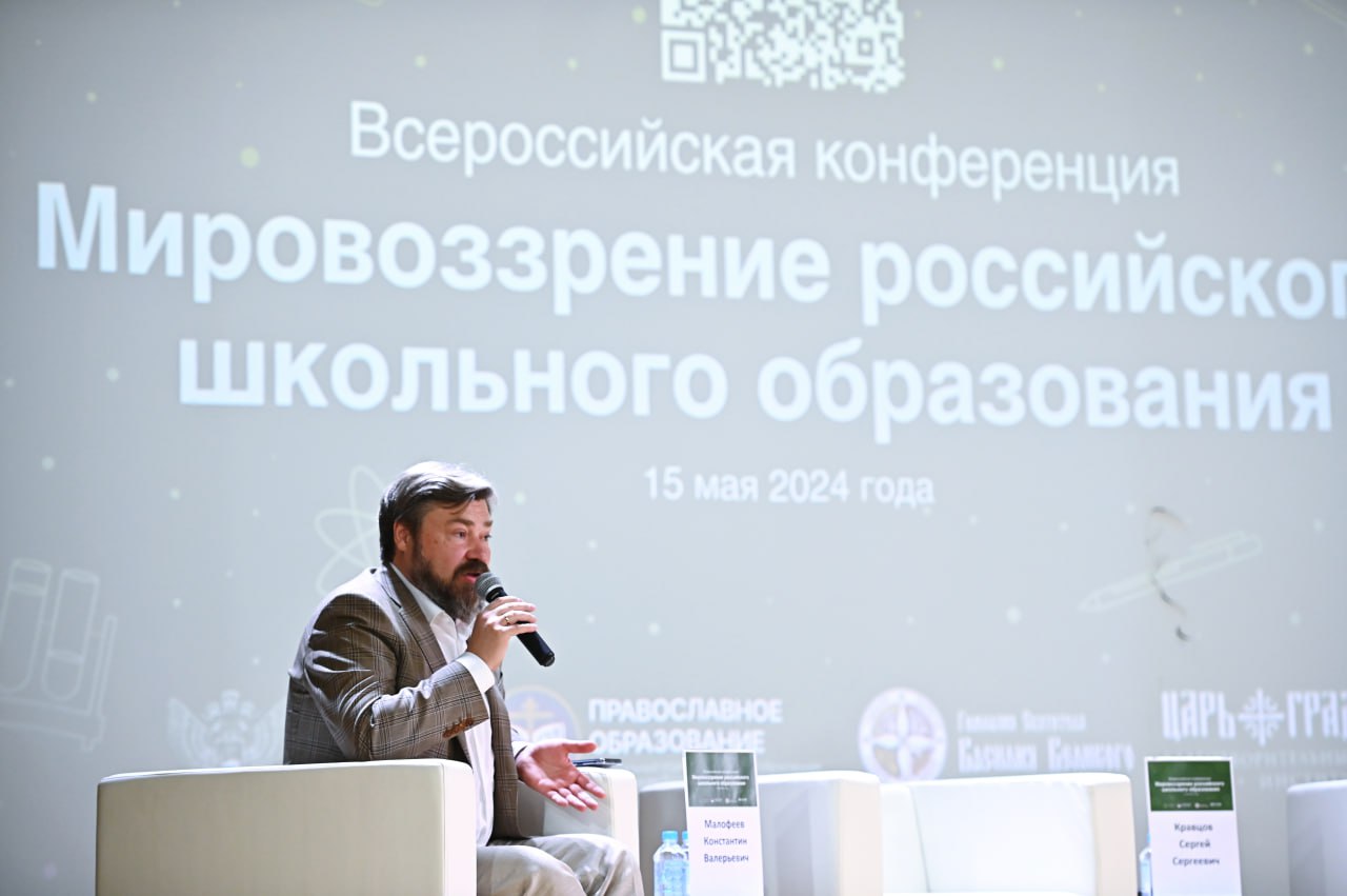 В Гимназии Святителя Василия Великого 15 мая открылась Всероссийская конференция "Мировоззрение российского школьного образования". Вступительное слово сказал учредитель телеканала Царьград Константин Малофеев.