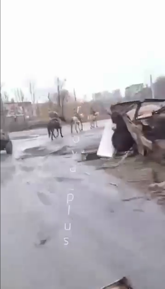 На другом видео можно заметить, как группа военных без особой спешке едет на лошадях вдоль дороги на фоне обстрелянных многоэтажек. Украинский Telegram-канал "Политика страны" утверждает, что это русские военные движутся по территории Покровска.