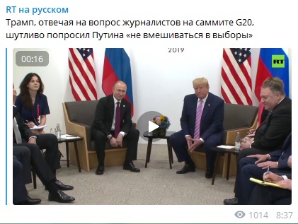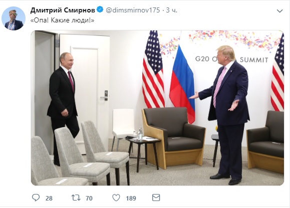 “Vladimir, thank you very much!”: Путин и Трамп в Осаке pic.twitter.com/9EAjgxIhqb