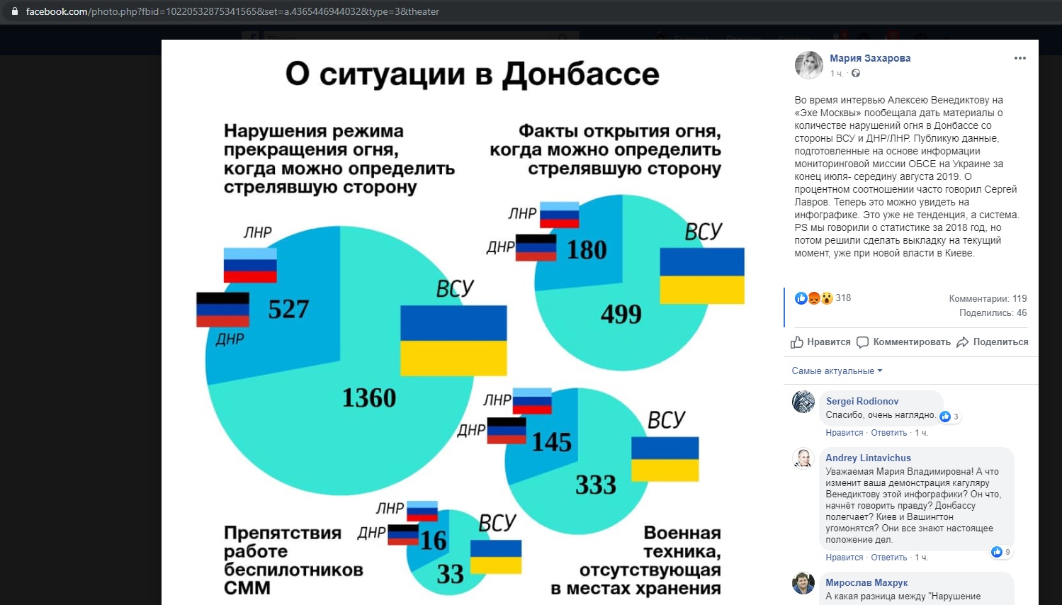 Инфографикой Мария Захарова поделилась на личной странице в социальной сети Facebook.