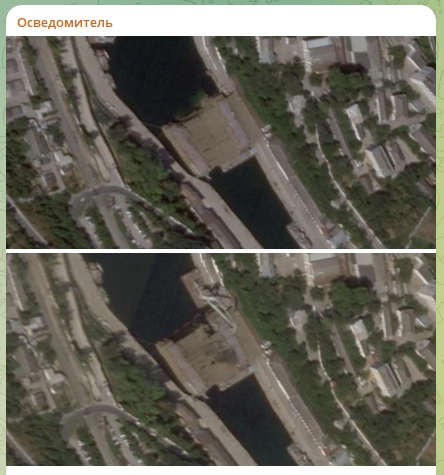 Схожий вывод сделал и автор Telegram-канала "Осведомитель", который также оценил спутниковые снимки. По его словам, на фотографиях можно заметить некоторые повреждения камуфляжной надстройки, однако не более того.