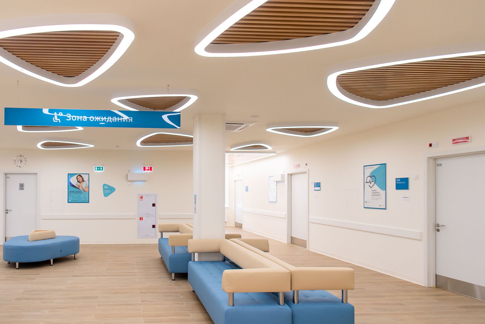 В рамках первого этапа программы в округе модернизировали 20 поликлиник. В отремонтированных зданиях вместо регистратуры за стеклом установлены удобные стойки информации с консультантами. Приём пациентов ведут дежурные врачи, а справку или направление можно быстро получить в специальном кабинете. В холлах теперь есть зоны ожидания, кулеры с водой. Пациенты детских поликлиник могут поиграть в игрушки, а мамы с грудничками - уединиться для кормления. Тёплые природные тона интерьеров создают приятную атмосферу. Новая навигация интуитивно понятна, что позволяет без труда находить нужный кабинет. Для врачей и медицинских сестёр оборудованы уютные комнаты отдыха, где они могут перекусить и обсудить рабочие вопросы. Кабинеты специалистов оснащены эргономичной мебелью: столами, стульями, креслами и шкафами. Территории около поликлиник благоустроили, у детских медучреждений, где возможно, организовали игровые площадки.