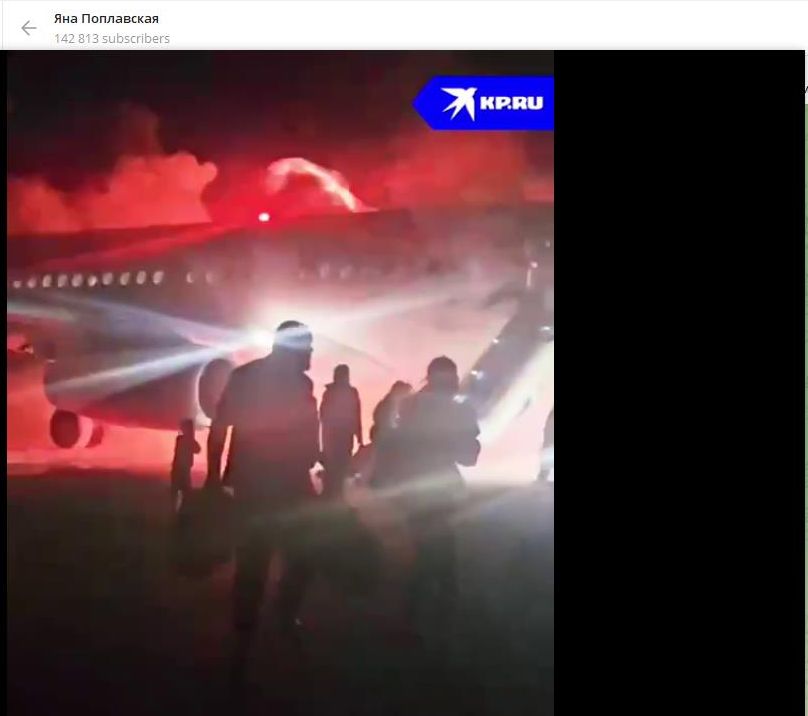 Самолёт горит, зато чемоданы с собой… Скриншот: телеграм-канал "Яна Поплавская"