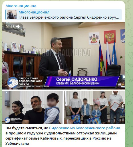Напомним, что сегодня стало известно, что глава Белореченского района Краснодарского края Сергей Сидоренко выдал сразу три сертификата на улучшение жилищных условий трём семьям бывших мигрантов, которые, по данным источников, не так давно стали гражданами России. При этом в комментариях местные жители писали, что годами стоят в очереди, но странным образом очередь эта никогда до них не доходит. Так, одна семья "ждала чуда" аж до 18-летия своего младшего ребёнка, после чего их сняли с очереди.