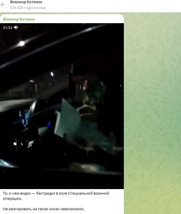 Речь идёт о происшествии, которое, как утверждает Котенок, произошло на блокпосту в Мелитополе. На видеозаписи случившегося видно, как военные на блокпосту остановили Mercedes и попросили показать боевое распоряжение. Однако ситуация быстро накалилась, когда выяснилось, что на документе не поставлена дата, а значит, он недействительный. В разразившейся перепалке дело едва не дошло до применения огнестрельного оружия. Одного из участников инцидента в Сети опознали как командира батальона "Восток-Ахмат" Ваху Хамбулатова.