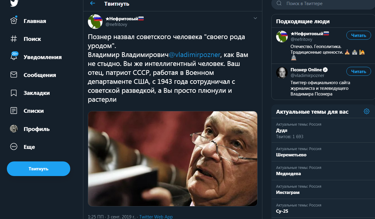 "Ваш отец, патриот СССР, работая в Военном департаменте США, с 1943 года сотрудничал с советской разведкой, а Вы просто плюнули и растерли", - напомнил Познеру пользователь под ником "Нефритовый".