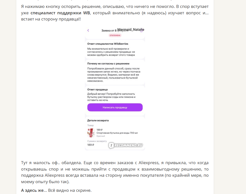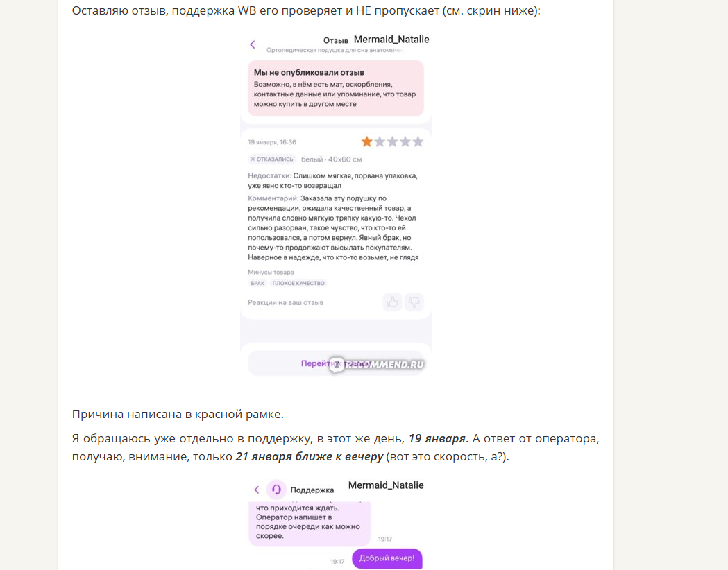 При этом сотрудники Wildberries, вмешавшись в ситуацию, постановили: продавец прав, нет оснований возвращать покупателю средства. Возмущённая клиент пишет честный отзыв о качестве товара, но…