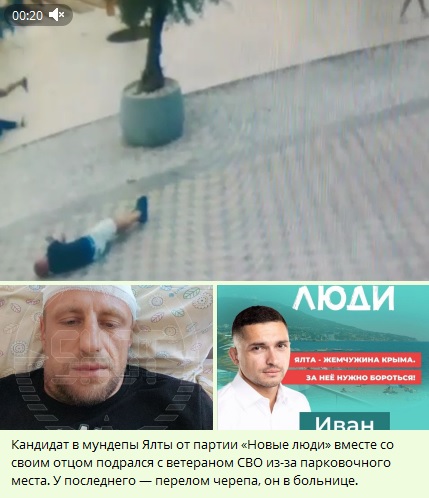 В Ялте кандидат в депутаты избил ветерана СВО, он в больнице. Преступление зафиксировала камера видеонаблюдения. Агрессию спровоцировало замечание о неправильной парковке.